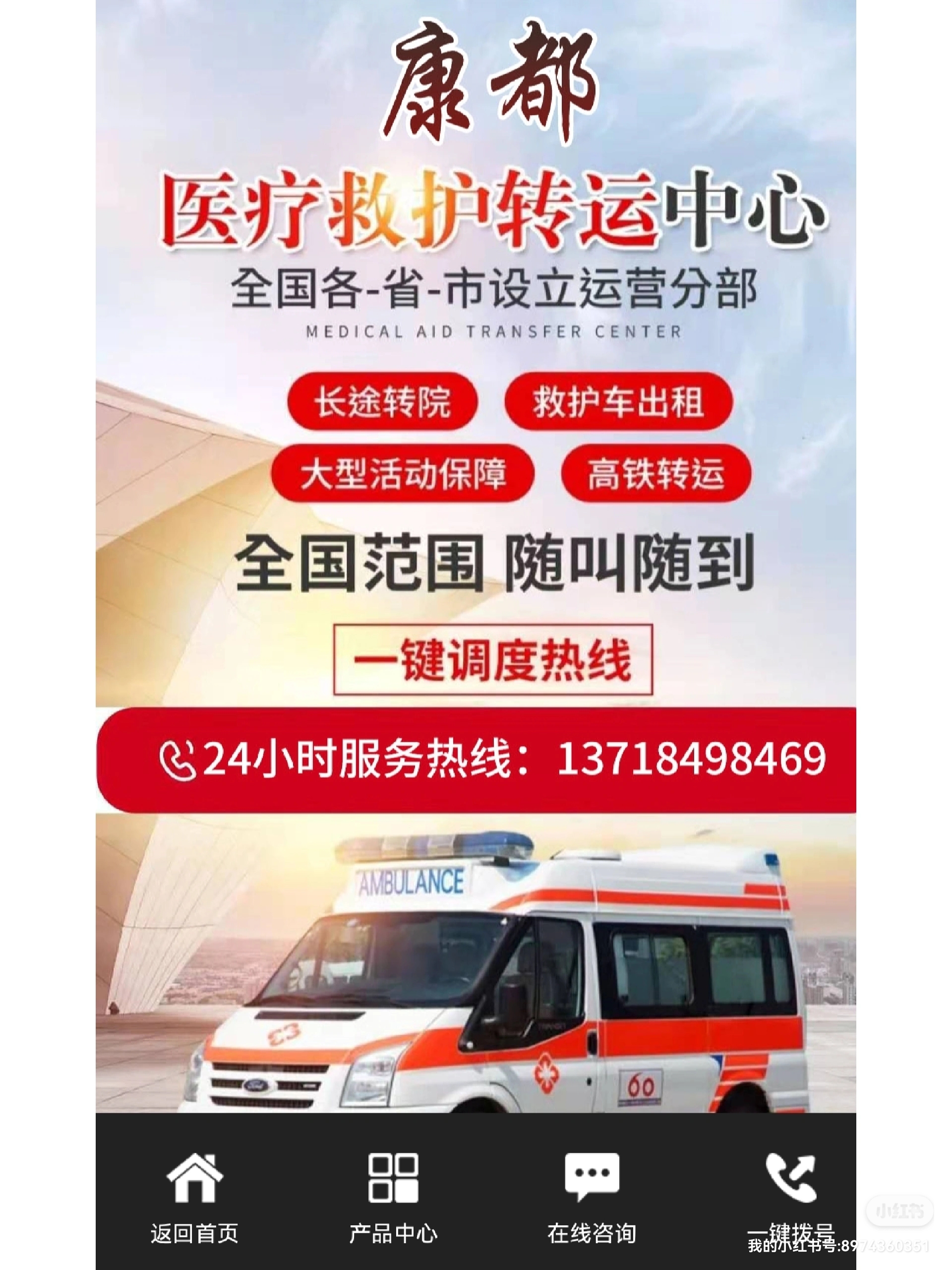 丹阳市120救护车长途转运跟大家聊聊如何办理救护车牌照:1.根据许可证税第七条的规定:卫生机关和公共组织设立的医院、具有固定特殊设备和特殊标志的交通工具,如救护车、诊疗车、洒水车、水肥车、垃圾车等,免征许可证税/燃料税;前一项免征许可证税的交通工具,使用前应办理免征手续!2.申请人应准备件/申请机关单位:一、申请设立。(一)民营救护车机构设立许可申请表。(二)设置计画书。下列事项应按规定说明:1.业